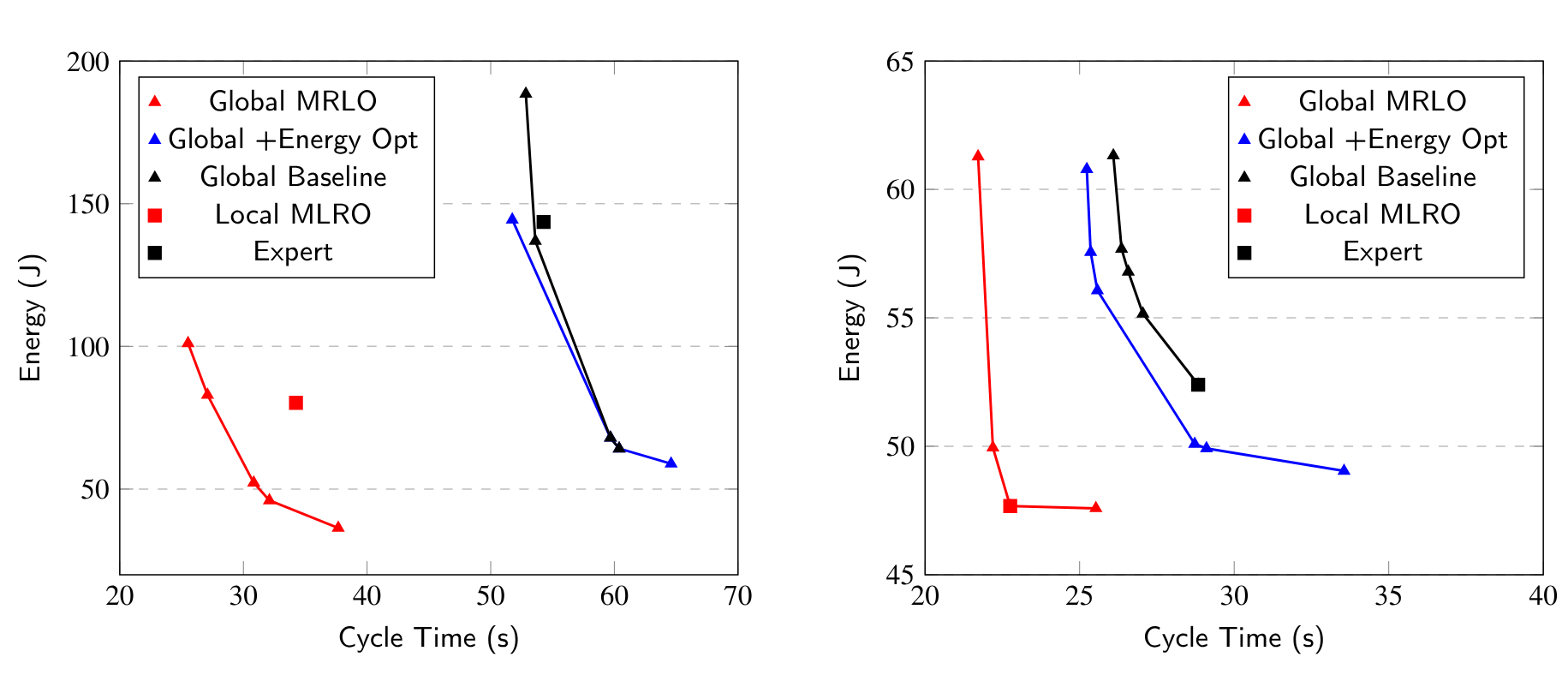We demonstrated MRLO’s effectiveness through simulations of different production scenarios, including a two-robot sequential pipeline with conveyors and a parallel robot assembly line. The results showed substantial improvements in both cycle time and energy consumption compared to baseline approaches.