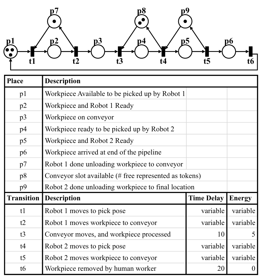 One of the most impressive aspects of MRLO is its workflow scheduling component. Using a Petri net model of the production system, it not only determines when tasks should execute but also identifies which motions are on the critical path (those that directly affect cycle time) and which have timing flexibility.